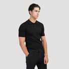 Dit heren polo shirt zal je huid omarmen met een ongeëvenaarde eenvoud en zachtheid, met een gebreide constructie die een kraag met gedeeltelijke knoopsluiting, korte mouwen en een flatterende pasvorm biedt. De heerlijk zachte geribbelde textuur geeft het klasse en is geschikt voor formele gelegenheden.