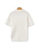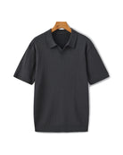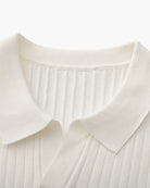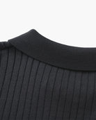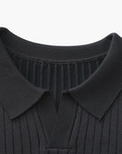 Een gebreide polo ontworpen voor ingetogen elegantie. De verticale ribstructuur voegt diepte toe, terwijl de ontspannen pasvorm zorgt voor comfort de hele dag door. Perfect om te combineren of solo te dragen – dit veelzijdige kledingstuk biedt een balans tussen draaggemak en tijdloze stijl.